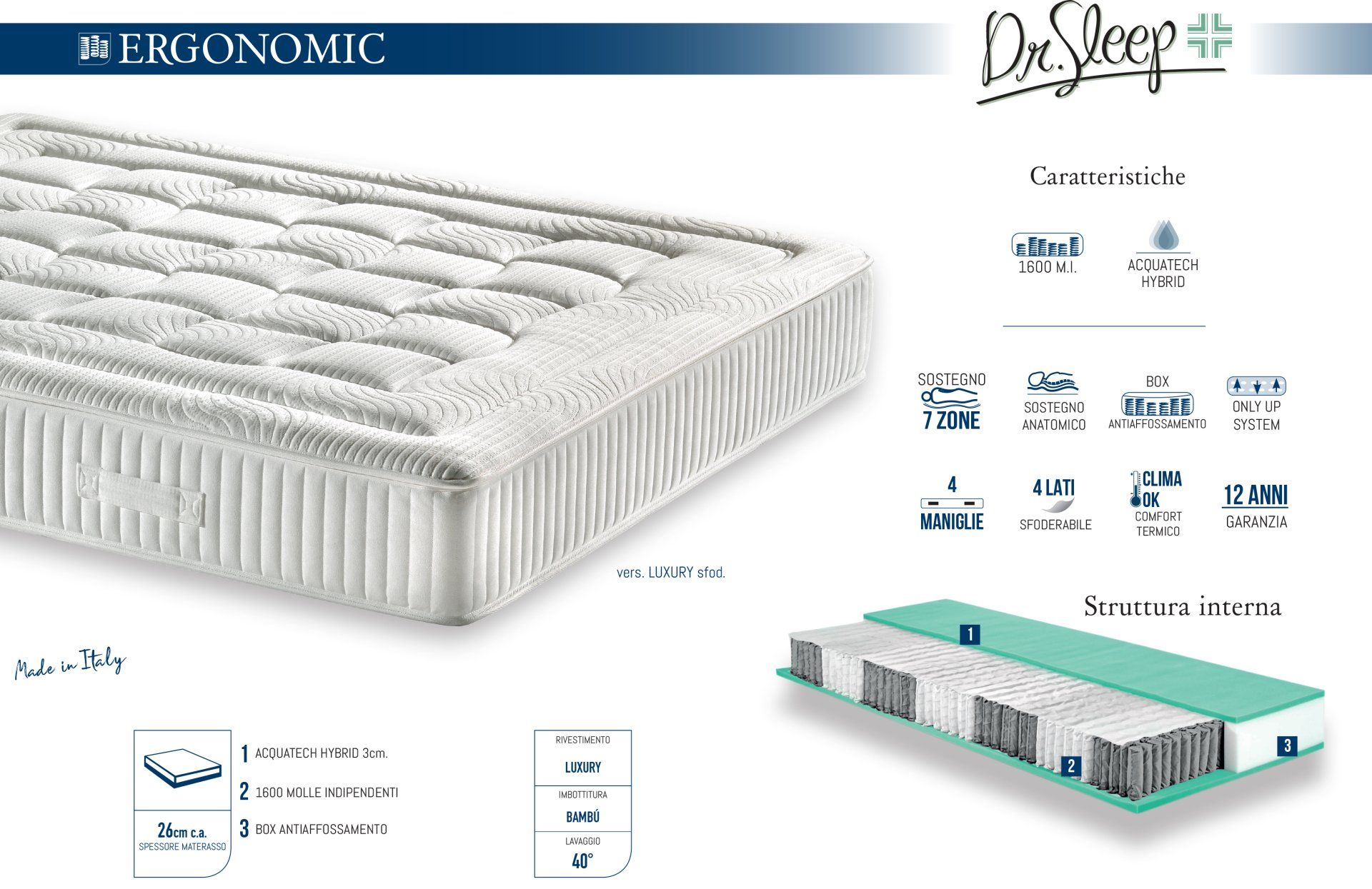 Il materasso creato per un ottimo accoglimento progressivo, grazie alla sua struttura interna formata da 1600 molle indipendenti a 7 zone a portanza differenziate. Il suo rivestimento con imbottitura in Bambù Fresh è completamente sfoderabile e lavabile in acqua a 40°.