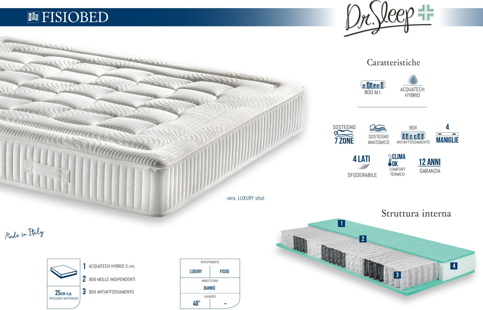 Il materasso nato per garantire un ottimo accoglimento progressivo, grazie alla sua struttura interna formata da 800 molle indipendenti a 7 zone a portanza differenziate. Il suo rivestimento con imbottitura in Bambù Fresh è completamente sfoderabile e lavabile in acqua a 40°.